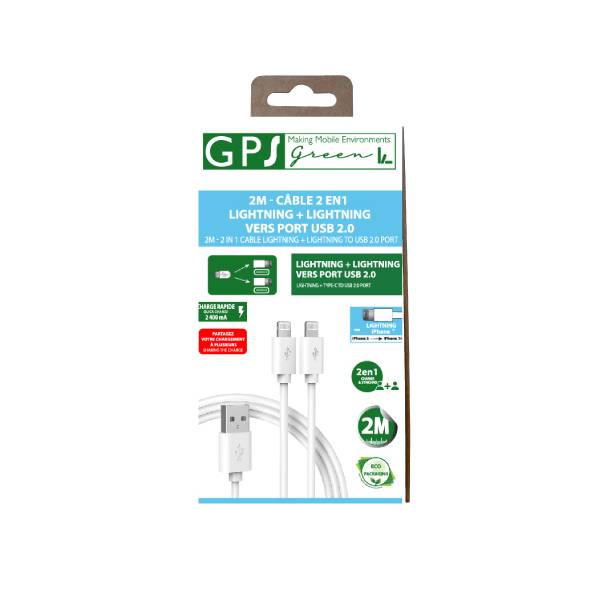 CABLE USB 2 EN 1 DOUBLE LIGHTNING 2M 2400mA