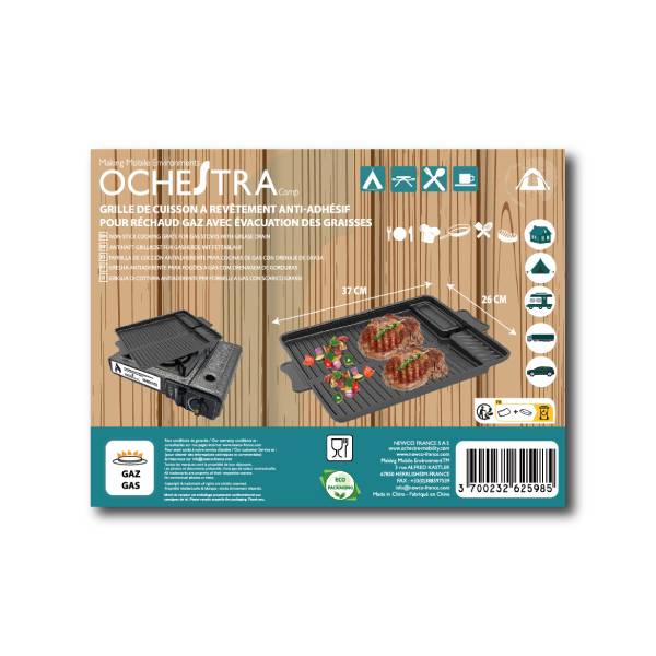 GRILLE DE CUISSON 37 X 26CM RECHAUD GAZ AVEC POIGNEES ET EVACUATION
