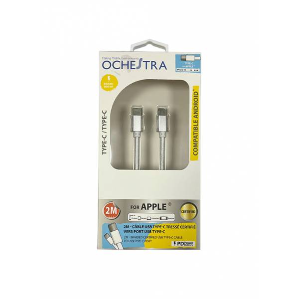 CABLE USB C - USB TYPE C 2 M 3000mA CERTIFIE TRESSE