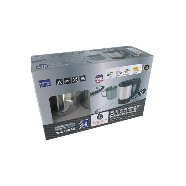 BOUILLOIRE 700ML 24V 250W INOX + GOBELET 50CL + CUILLERE + BAGUETTES