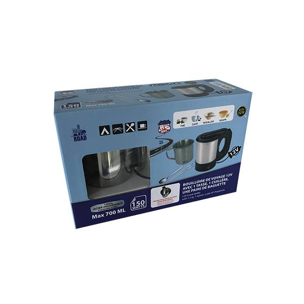BOUILLOIRE 700ML 12V 150W INOX + GOBELET 50CL + CUILLERE + BAGUETTES