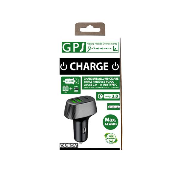 PRISE USB TRIPLE 12/24V 44W (2X USB 2.0 +1X USB-C) PD/QC 3.0 CARBONE