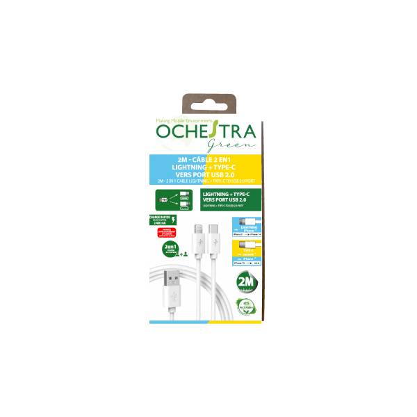 CABLE USB 2 EN 1 LIGHTNING + USB TYPE-C 2M 2400mA