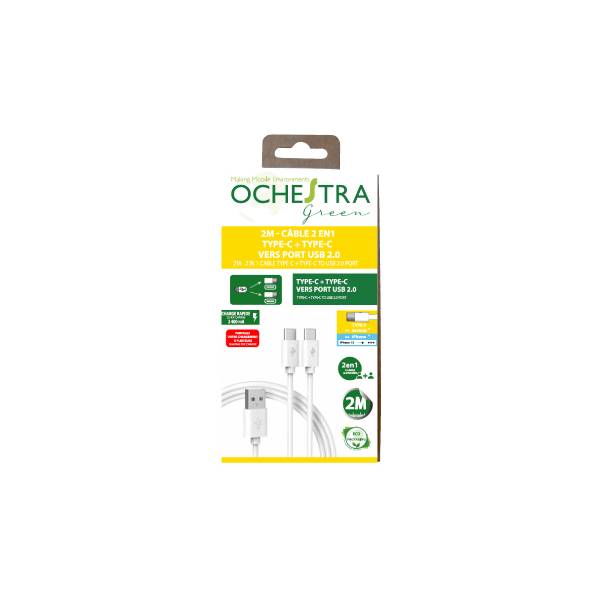 CABLE USB 2 EN 1 DOUBLE USB TYPE-C 2M 2400mA