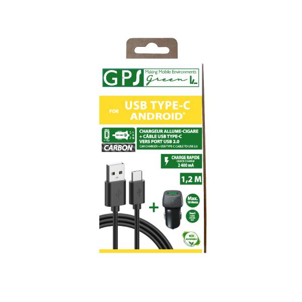 CHARGEUR 12/24V USB TYPE C 2400mA 1,2M CARBONE