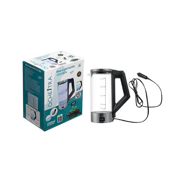 BOUILLOIRE 1L 12V 150W TRANSPARENTE A LEDS BLEUES